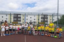 После познавательных игр ребята активно приняли участие в спортивных соревнованиях на велосипедах и самокатах. В заключении соревнований все ребята получили медали юного велосипедиста. -