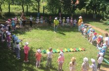 Сегодня в МБДОУ "Солнышко" на спортивной площадке было проведено спортивно- развлекательное мероприятие «Счастливое детство моё!» среди воспитанников. Программа «Спортивных игр» была интересной и достаточно насыщенной. Все этапы мероприятия проходили в активной борьбе. Зрители активно болели за свои команды. Все участники команд стремились прийти к финишу первыми. В программу соревнований включили задания не только на физическое развитие, но и задания, способствующие развитию мышления, внимательности,, целеустремленности, ловкости.