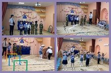 В старшей группе «Звёздочки» праздник начался с красивого выхода детей под марш с флагами в руках, затем последовали конкурсы, эстафеты, как «Разведчики», «Минное поле», «Меткий стрелок», «Полоса препятствий».