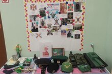 В преддверии праздника Дня защитника Отечества, в средней группе МБДОУ "Солнышко" состоялась фотовыставка «Мой папа, дедушка в армии служили», выставка "Военная техника и атрибутика". В экспозиции выставки были представлена подборка фотографий, на которых запечатлены фото пап и дедушек, служивших в рядах Советской и Российской армии. На выставку дети и родители принесли в детский сад игрушечные танки, самолеты, катюши, вертолеты, атрибуты военных лет, а также сделали военную технику своими руками. Выставка вызвала большой интерес у детей и родителей.
