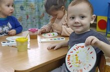 В младшей группе "Муравейка", прошло занятие по художественно-эстетическому развитию (рисование). Малыши украшали тарелочку. Дети закрепили умение работать красками.