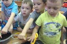 Дети разновозрастной средней группы «Смешарики» продолжают своё наблюдение за посаженным луком в разных условиях . За неделю произошли перемены и дети сделали вывод : что лук не растёт в сухой земле - землю надо поливать ;независимо от цвета лука и размера появляются ростки и перья у золотистых и фиолетовых луковиц одинаковые;отсутствие одного компонента (свет) влияет на рост лука, он растёт намного медленнее. Наш проект продолжается будем наблюдать за ростом зелёных перьев лука , и ознакомимся с его полезными свойствами .