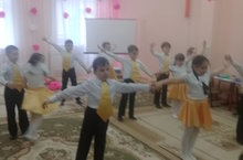 В нашем детском саду тоже состоялось мероприятие, посвященное празднованию Дня Победы. Предварительно с детьми в группах были проведены занятия, беседы о подвигах советских людей. В мероприятии принимали участие все дети нашего детского сада. Под звуки военного марша дети с флажками вошли в музыкальный зал. Дети разновозрастной младшей группы показали танец с ленточками «Салют», танец «Богатыри». Дети разновозрастной средней группы спели песню «О мире», станцевали «Танец цветов». Дети разновозрастной старшей группы показали танец «Солдаты», исполнили песню «Россия». Дети с чувством особой благодарности читали стихи, вспомнили пословицы о силе, отваге, о солдатах, внимательно слушали песни военных лет «Журавли», «В землянке» в исполнении воспитателей.