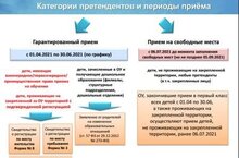 С 2021 года действуют новые правила записи детей в первый класс. Запись проходит в два этапа: 1. С 1 апреля по 30 июня — для детей, которые живут на прикрепленной территории или имеют первоочередное и преимущественное право на зачисление. Приказы о зачислении издаются по окончании приёма всех заявлений 2. С 6 июля по 5 сентября — для детей, которые живут не на закреплённой территории. Зачисление возможно только при наличии свободных мест.