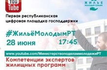 Республики Татарстан в рамках мероприятий Всероссийского Дня молодежи, в целях повышения эффективности информирования молодежи о действующих в Татарстане программах и мерах государственной поддержки молодых семей, молодых специалистов в улучшении жилищных условий 28 июня 2021 года в 17.45 проводится второй прямой эфир #ЖильёМолодымРТ.