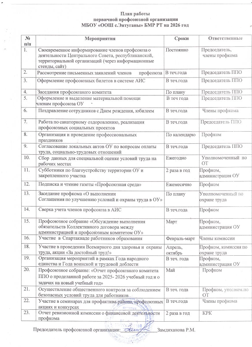 План работы ППО на 2026 год