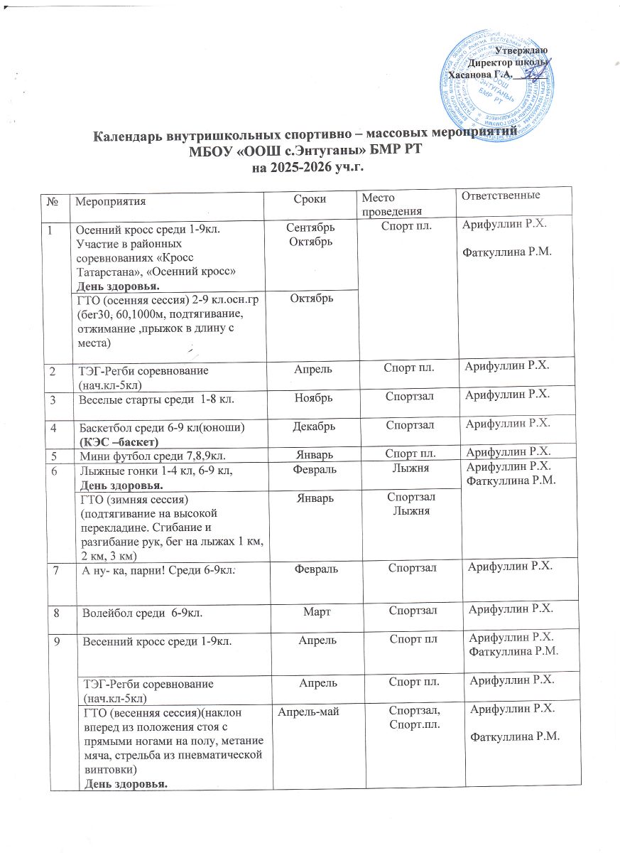 Календарный план спортивных мероприятий на 2025-2026 учебный год