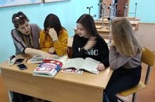 В гимназии идёт подготовка к экзаменам по английскому языку. Девочки выполняют тренировочные задания письменной и устной части экзамена.Затем вместе с учителем разбирают, какие есть "подводные камни" в каждом разделе.