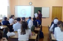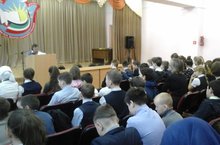 Сегодня состоялось открытие месячника гражданско-патриотического воспитания. Воен рук гимназии Хисмов А М ознакомил обучающихся с планом работы месячника
