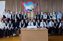 Сегодня учащиеся 5А, 5Б и Юнармейцы, учащиеся 9 А класса - Салахиев Самат и Галеев Ильдан, приняли участие в мероприятие - "Час памяти "Прерванный урок""