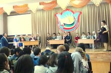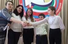 На сцене гимназии дети разных национальностей. Каждый из них поприветствовал всех на своем родном языке.Мы все разные , но едины Учимся и дружно живем в гимназии.БЕЗ БЕРГӘ- ТАТУ ГАИЛӘ!