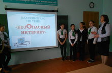 8 нче сыйныфта “Куркынычсыз интернет” темасына сыйныф сәгате үткәрелде. Укучылар “Сезгә интернетта күбрәк нәрсә ошый?”, “Интернетта утыруыгызга әти-әниләрегез ничек карый?” сораулар буенча фикер алыштылар. Укучылар интернетның файдалы яклары күп булуын, кайсы сайтлардан күбрәк файдалануларын сөйләделәр. Шулай да интернетта азартлы уеннар, төрле куркыныч программалар, онлайн пиратлар, ялган информацияләр безне сагалап торуы хакында да әйтелде.Сыйныф сәгате ахырында, бу куркыныч хәлләргә очрамас өчен, интернеттан ничек файдаланырга кирәклеге турында сүз алып барылды