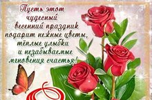 Глубоко символично, что главный женский день в году совпадает с первыми робкими шагами весны по нашей планете! Ведь женщины, как и сама весна, - красивы, нежны и чуточку ранимы, поэтому и нуждаются в верной мужской любви и надежной защите... Милые дамы, дорогие коллеги, позвольте пожелать вам вечной молодости и неувядающей красоты, пусть здоровье с каждым годом крепнет, а настроение всегда будет отличным! Пусть сегодня дома вас ждут цветы и подарки, веселый смех и добрые пожелания!
