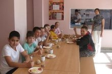 После интересных мероприятий мы отправляемся в нашу столовую. Наши повара вкусно готовят! Особенно благодарны мы Кабировой Д. , Талиповой А. После сытного обеда мы продолжаем игры в городском стадионе.