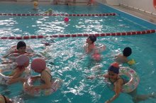 Буген балалар тәрбиячеләре белән "Дельфин" бассейнына су коенырга бардылар, бассейннан соң гимназиябезнең спорт мәйданчыгында спорт уеннары уйнадылар.