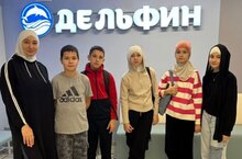 Сегодня ученики 6а класса с классным руководителем Кабировой Р. Р. побывали в бассейне Дельфинарий