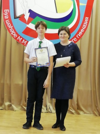 Гимназиянең актлар залында “Җәлил укулары – 2021” халыкара әдәби конкурсының мәктәп турында җиңгән 15 укучы грамоталар белән бүләкләнде. Алар “М. Җәлил шигырьләре туган телдә”, “М. Җәлил шигырьләре рус телендә”, “ Җәлил шигырьләре дөнья халыклары телләрендә”, “Яшь җәлилчеләр”, “Фронтовик язучылар татар телендә” номинацияләре буенча көч сынаштылар.