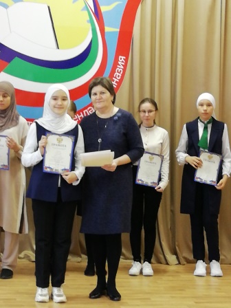 В актовом зале гимназии чествовали победителей школьного этапа Международного конкурса чтецов ”Джалиловские чтения - 2021”. 15 учащихся были награждены грамотами. Они стали лучшими в номинациях “М. Джалиль на татарском”, “М. Джалиль на русском”, “Джалиловцы на языках мира”, “Юные джалиловцы”, “Фронтовики-писатели на татарском”.