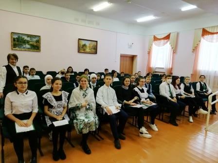 В честь Года родных языков и единства народов в Республике Татарстан состоялся литературно-музыкальный вечер, посвященный 130-летию со дня рождения выдающегося драматурга Мирхайдара Файзи. Мероприятие подготовили учащиеся 10 классов. Они рассказали 7-9 классам о жизни и творчестве драматурга, познакомили с историей написания драмы “Галиябану”, показали отрывки, спели песни из спектакля. В конце вечера артисты академического театра им.г. Камала посмотрели отрывки из спектакля.