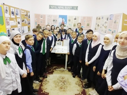 Гимназиянең туган төбәкне өйрәнү музеенда беренче экскурсия 11 нче сыйныфлар өчен үткәрелде. Халыкара Туган телләр һәм халыклар бердәмлеге елы уңаеннан укучылар музейдагы “Халкымның күңел бизәкләре” экспозициясе белән таныштылар. Күл эшләре үрнәкләре, татар халкының милли киемнәре, хуҗалыкта әби-бабаларыбыз кулланган эш кораллары белән таныштылар.