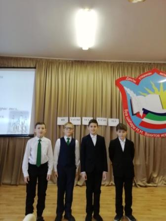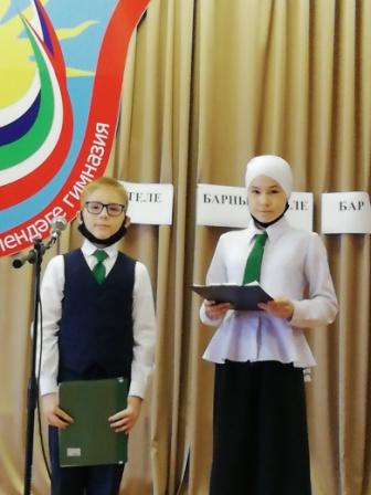 Гимназиядә 20 нче февраль көнне туган тел көненә багышланган “Туган телем – иркә гөлем” исемле әдәби-музыкаль кичә үткәрелде. 5-9 нчы сыйныф укучылары катнашында узган чарада Х. Туфан, Р. Фәйзуллин, Г. Зәйнәшева, Э. Мөэминованың туган тел турында шигырьләре; туган тел, туган җир, әниләр турында җырлар яңгырады. Укучылар татар, рус, чуваш, үзбәк телендә язылган шигырьләр сөйләделәр. Курикова Ольга “Эх, чун” (“Күңелем”) җырын, Саврасова Екатерина ”Юрататоп човаш челхине” (“Чуваш телен яратам”) шигырен башкардылар. Кичә төрле милләт халыклары биюләре белән аралашып барды. .jpg)
