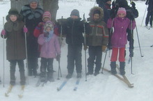 В этом году январь месяц теплый. Дети охотно бегают на лыжах.