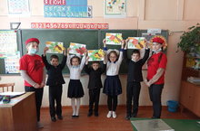 Юнармейцы вместе с учащимися начальных классов изготовили открытки к празднику.