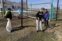 Работа по очистке территории школы началась.