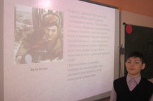 С 1964 года во всём мире отмечается День юного героя-антифашиста. Он был утверждён Международной Ассамблеей ООН в честь погибших на антифашистском митинге в 1962 г. В России 8 февраля вспоминают советских мальчишек и девчонок, которые плечом к плечу со взрослыми встали на защиту страны во времена Великой Отечественной войны. В нашей школе учитель истории и обществознания Васильева Т.М. провела мероприятие «Пионеры- Герои Великой Отечественной войны». Учащиеся 5-8 классов познакомились с юными героями и их подвигами.