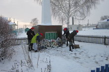 В честь Дня Героя Отечества отряд Юнармейцев очистил территорию обелиска павшим воинам в ВОв.
