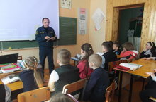 В школе начальник отдельного поста по охране д.Кошки-Теняково Карамзин О.И. провёл открытый урок "Осторожно! Тонкий лёд!"