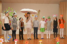 Сегодня учащиеся начальных классов представили спектакль по сказке В.Сутеева "Под грибком".