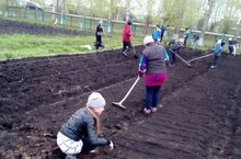 Бүген укытучылар һәм укучылар бергә мәктәп бакчасына кишер һәм суган утырттылар. Бергә эшләү бик күңелле булды.