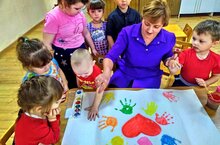 Провели игры-соревнования среди двух команд, прочитали стихи и подарили подарки, сделанные своими руками, пожелав им быть счастливыми и здоровыми.