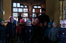 В рамках участия в республиканском конкурсе проектов "Родные истоки" дети старшей разновозрастной группы нашего детского сада посетили местную Богоявленскую церковь.