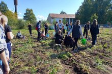 Вот так, весело и непринужденно, ученики 8 и 9 классов справились с уборкой урожая на пришкольном участке.