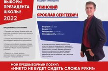 Поздравляем Глинского Ярослава с победой на выборах в президенты школы! После осенних каникул состоится инаугурация вновь избранного президента.