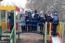Пятый класс дружным коллективом во главе с классным руководителем Тихоновой Евгенией Леонидовной собрался на спортивной площадке, чтобы поиграть в подвижные игры, поупражняться на тренажёрах и просто пообщаться.
