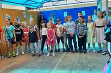 Дети пришкольного лагеря "Все цвета радуги" посетили детский сад. Ребята подготовили песни и танцы.Малыши были рады гостям.
