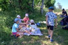 Поход на природу в пришкольном лагере "Все цвета радуги" Игры на природе, рыбалка, сбор земляники - занятия сегоднешнего дня.