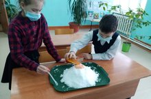 19 января учитель биологии Степанов В.А. провел Международный День снега, ребята изучили влияние соли на таяние снега, и показали снежный вулкан.