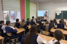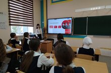 В рамках этой недели советник директора по воспитанию и взаимодействию с детскими общественными объединениями Валиева Г. Ф. провела просветительскую лекцию «108 минут, которые изменили мир» от Российского общества «Знание» в 5-а классе.