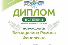 Загидуллина Рамина-призер Всероссийского Экодиктанта 17.12.2023