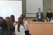 Сегодня на базе лицея обучающиеся школ города и студенты ССУЗов провели свою первую встречу с успешными предпринимателями нашей республики : Юсуповым Радиком , эксперт Совета по предпринимательству РТ при Президенте РТ, владелец двух IT- компаний и Ленаром Муртазиным, эксперт Совета по предпринимательству РТ при Президенте РТ, основатель сети групп компаний «NEKO”. Они рассказали ребятам о начале своего бизнеса , сложностях, с которыми пришлось им столкнуться и интересных событиях в своей жизни, которые привели их к любимому делу.