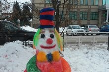Учащиеся школы слепили снежные фигуры к Новому году.
