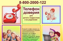Телефон доверия для детей и подростков и их родителей 08.08.2016
