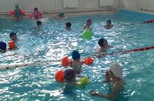 Воспитанники пришкольного лагеря вместе со своими воспитателями побывали в плавтельном бассейне "Дельфин"