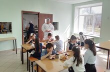 Представитель родительского комитета посетил в столовую школы с целью контроля организации в школьной столовой горячего питания на соответствие блюд утверждённому меню, соблюдение гигиенических требований для работников столовой, педагогов и обучающихся.