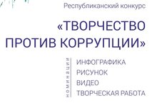 Стартовал ежегодный Республиканский конкурс творческих работ на антикоррупционную тематику «Творчество против коррупции» среди школьников, студентов и представителей работающей молодежи в возрасте до 30 лет. Участники конкурса могут представить свои работы в 4 направлениях: видеоролик, инфографика, рисунок и творческая работа. Последнее направление включает любые работы, отражающие негативное отношение к коррупции, например, открытка, стихотворение, флешмоб, квест и т.п. 11.11.2018