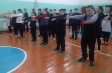 Гыйнвар – февраль айлары спорт уеннары уздыру айлыгы булып тора. Патриотик айлык кысасында да бу эшчәнлек тукталып тормый. Һәр уку көне иртәнге сәламәтләндерү зарядкасыннан башлана. Бүген аны чират буенча 7 сыйныфлардан Гөлназ бик оста итеп үткәрде! 03.02.2017